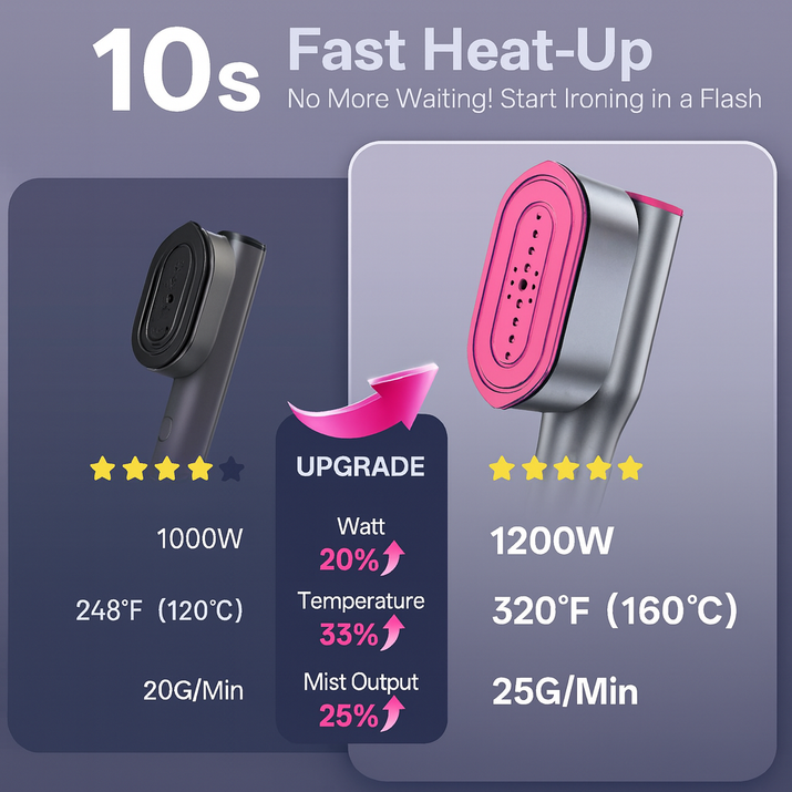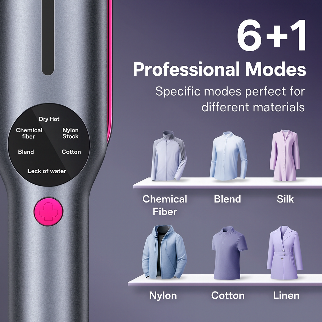 Elevate your wardrobe effortlessly with this smart handheld steamer, designed for quick and precise wrinkle removal anywhere you go. Experience seamless elegance in just seconds with its advanced features.
