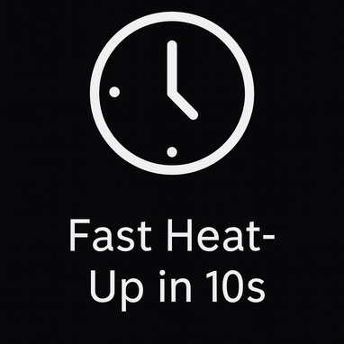 Answer 1: The steamer heats up in just 30 seconds and provides up to 15 minutes of continuous steam on a single fill, allowing for quick touch-ups and efficient use.